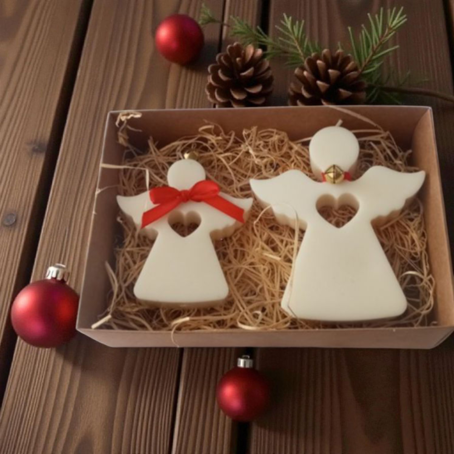 💫 Envolve o teu Natal numa energia de pureza e proteção com este coffret de Anjos da Luz Interior. Cada anjo, moldado artesanalmente em cera de soja natural, carrega no seu pavio um pequeno sino sagrado, símbolo da ligação entre o Céu e a Terra.
