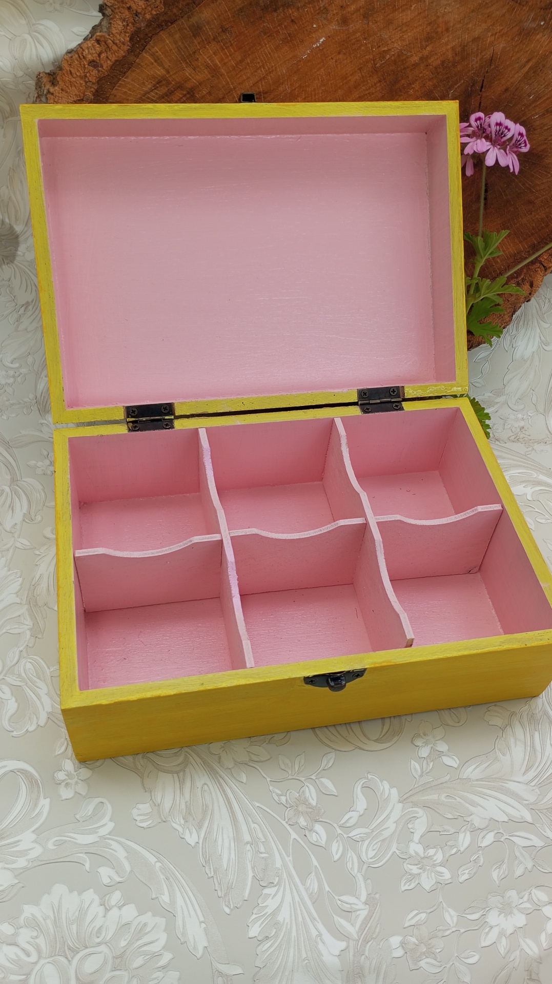 Caixa em madeira para guardar o chá com compartimento.pintafa á mão com a técnica de Pontilhismo.