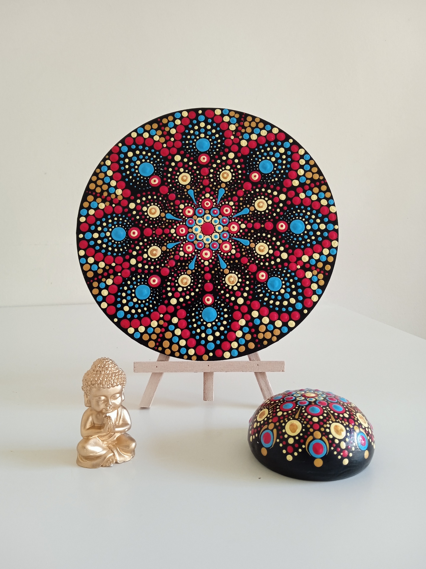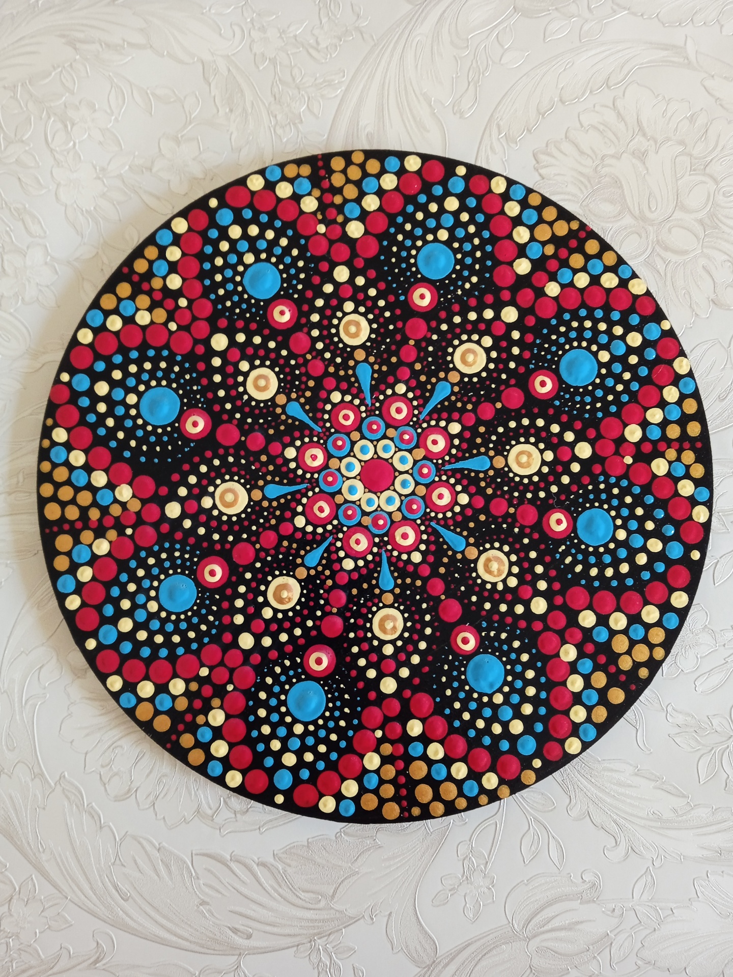 Mandala pintada á mão em madeira MDF redonda com a técnica do Pontilhismo 🌼 vai envernizada e pronta a pendurar.
