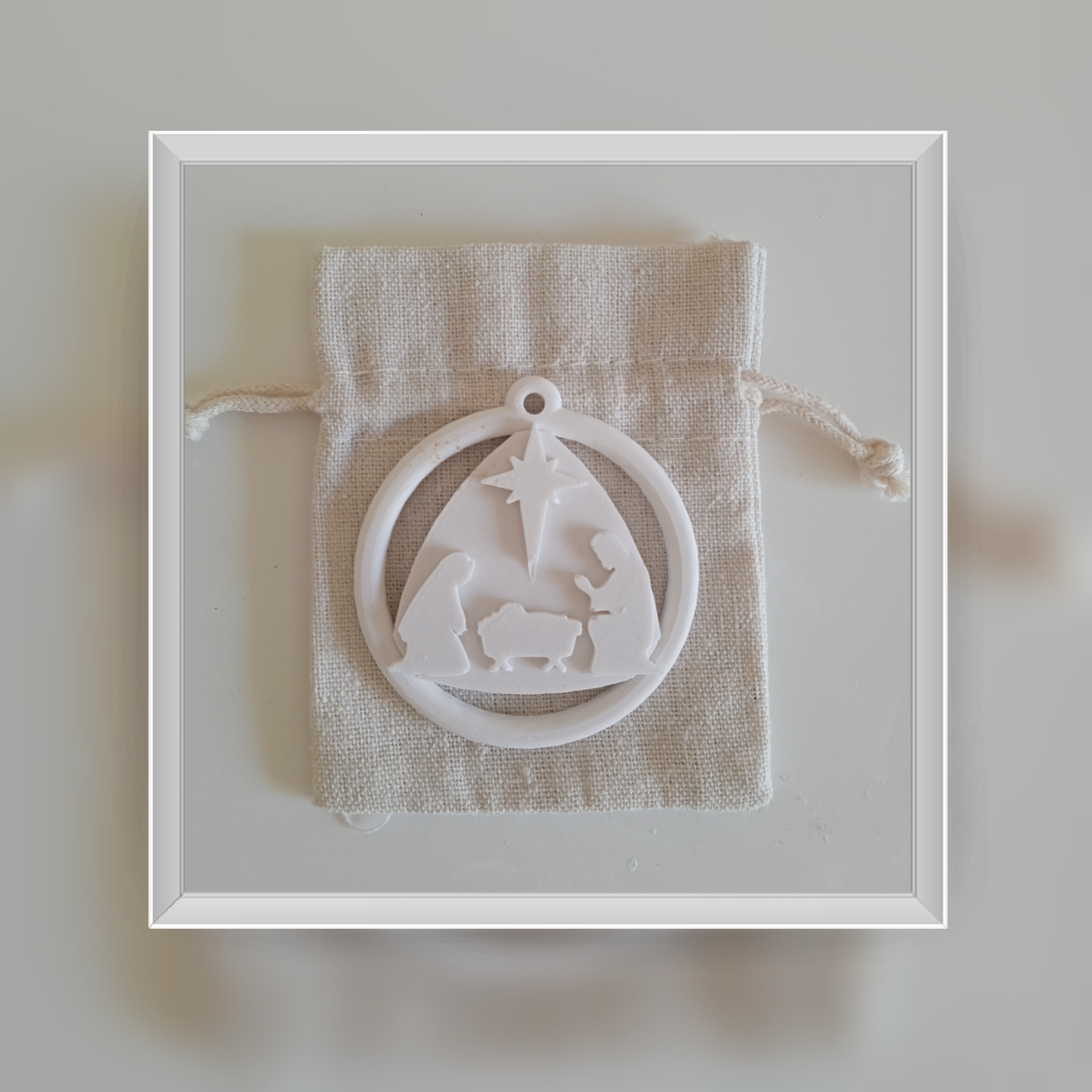Presépio confeccionado em cerâmica perfumada com aroma delicado de Cotton e Alfazema. É entregue em saquinho de linho e recarga de essência.