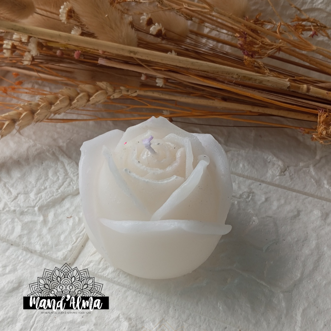Rosa em vela de cera de soja 🤍 remete-nos para a energia do Amor e da Feminilidade, duas excelentes energias para teres a vibrar no teu lar 🩷 com aroma delicado da flor de jasmim que transmite calma, tranquilidade e prosperidade 🪄