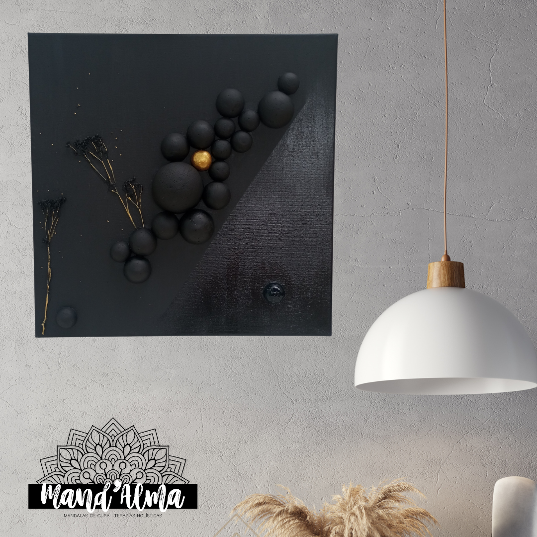 Cor - preto e dourado com fundo verde (que não se vê) para vibrar a energia da cura, abundância, requinte e resiliência 🤍